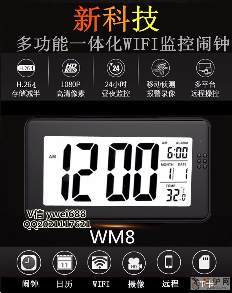 广角高清WIFI电子钟夜视网络版摄像机 V我 ywei688 高清无线远程摄像机 1500w像素 1080P分辨率 带红外夜视摄像功能 新款手机wifi摄像机上市了!